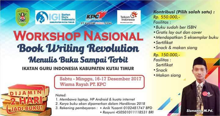 Tahun 2017 saya pernah mengadakan pelatihan tergila yang pernah ada di dunia. Saya diminta untuk memberi pelatihan guru-guru hebat Kutai Timur hanya dalam waktu dua hari *Menulis Buku Sampai Terbit*.