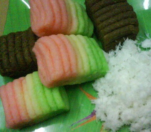 Beberapa tapak kaki saja saya sudah sampai di tengah pasar yang memang tidak begitu besar. Pandangan saya tertuju pada makanan yang berwarna warni, ada warna merah, kuning, dan hijau. Bahan pokoknya juga dari singkong yang dibumbuhi dengan pewarna makanan biar tampak lebih menarik. Sebelum dibungkus dengan daun terlebih dahulu penjualnya membubuhinya dengan kelapa yang sudah diparut, dialah “Gethuk Lindri” mirip seperti pelangi. Bisa jadi kalau menjadi sebuah novel judulnya menjadi “Gethuk Pelangi”, seperti punyanya Andrea Hirata “Laskas Pelangi” atau Samsikin Abu Daldiri dengan “Rumah Pelangi”nya.