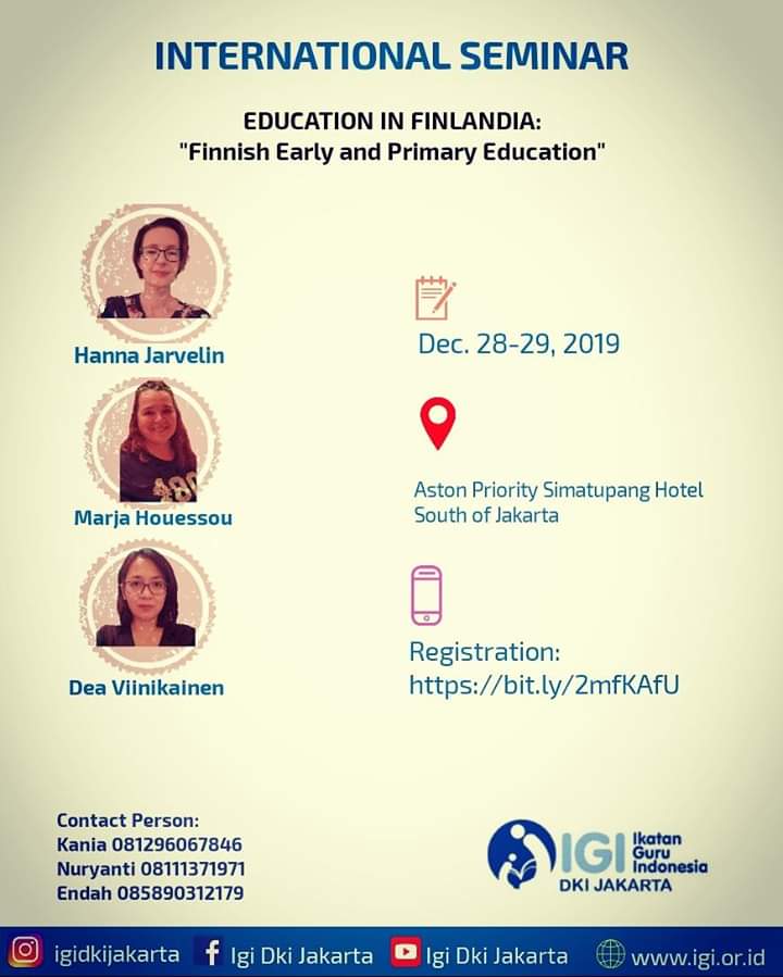 The Finnish Early and Primary Education Seminar dirancang secara interaktif dan praktis untuk para pendidik dan pelaku bisnis di bidang pendidikan. Program ini memberikan kesempatan untuk belajar, mendapatkan wawasan dan informasi berharga, dan juga membahas penerapannya ke institusi Anda. Program ini membangun pemahaman tentang