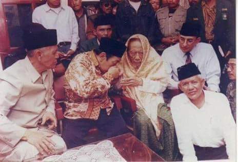 Ket foto: Gus Dur mencium tangan Mbah Tur (Kyai saya saat nyantri di Kudus)