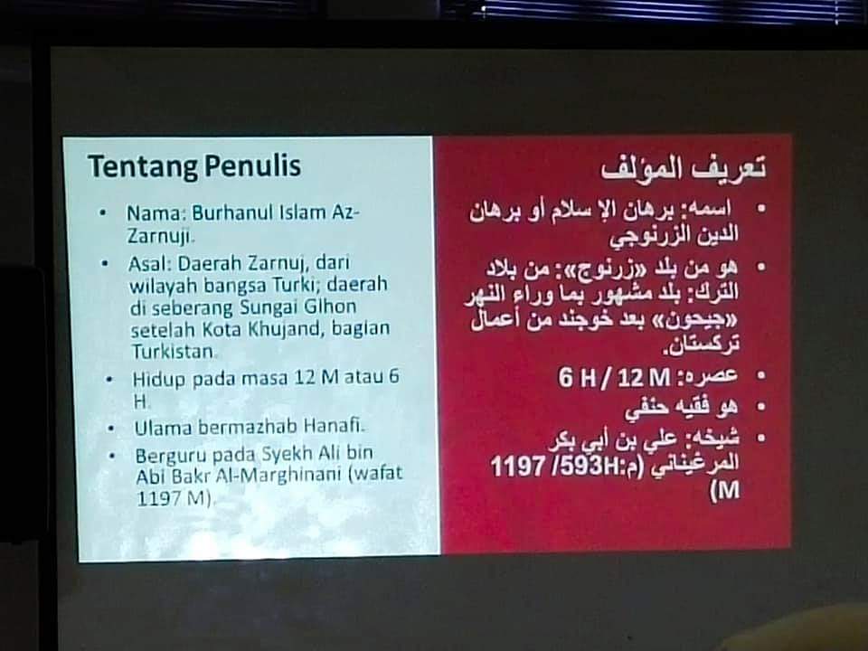 Mengingat bab atau pokok bahasan yang ada dalam kitab ta’limul muta’alim تعليم المتعلم طريق التعلم berjumlah tiga belas bab, maka Kyai Iffan Fanani pada pertemuan pertama hanya menyajikankan biografi dari pengarang kitab ta’limul muta’alim Syekh Az-Zarnuji, muqoddimh kitab dan pokok bahasan pertama tentang hakekat ilmu, hukum mencari ilmu, dan keutamaannya (فى ماهية العلم، والفقه، وفضله).