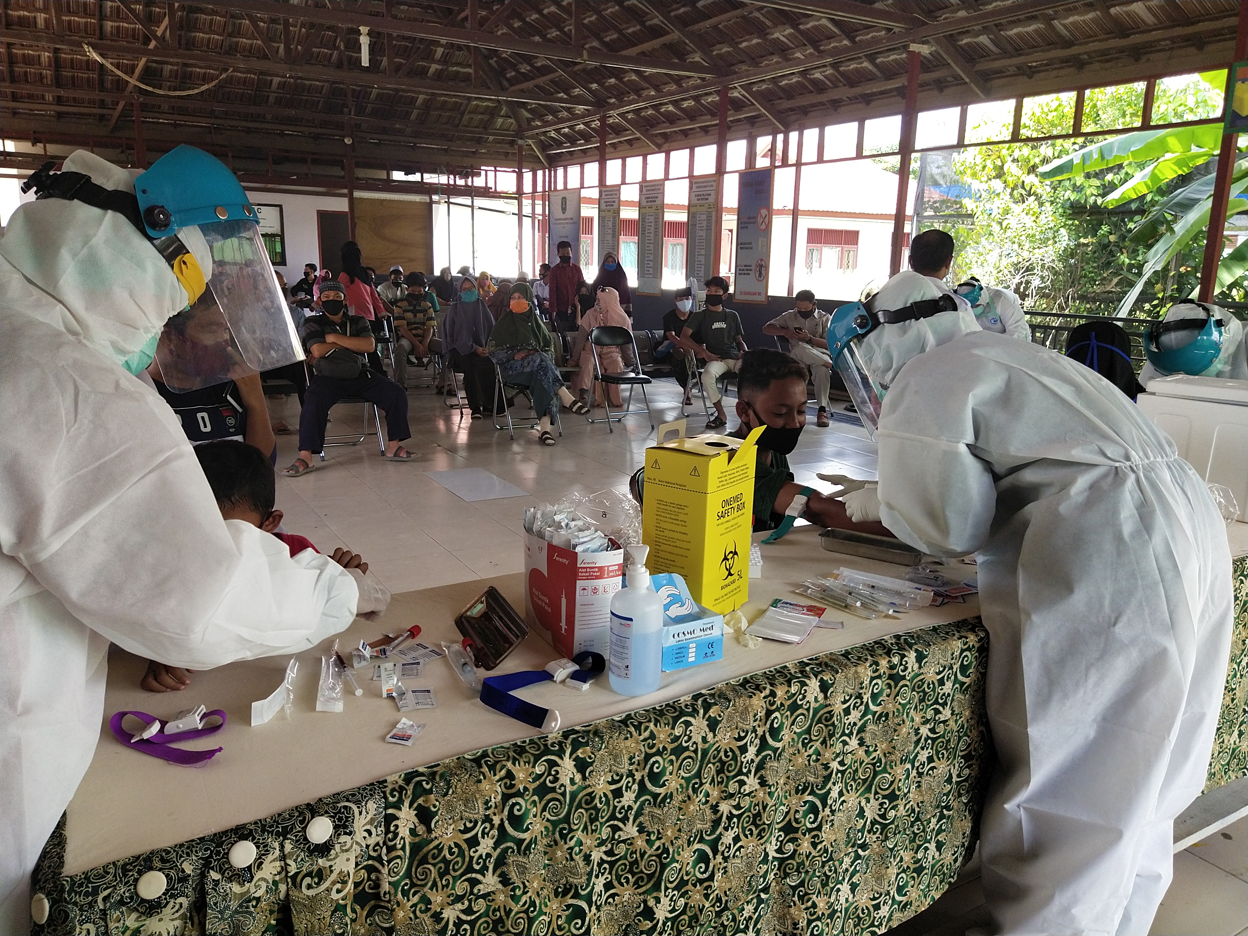 Lokasi pengambilan sampel rapid tes tahap 1 dilakukan di kantor kecamatan Sangatta Utara yang diikuti lima puluhan santri pelajar dan mahasiswa yang akan berangkat ke luar dari Kutai Timur mulai tanggal 2 Juli 2020 sampai dengan tanggal 5 Juli 2020.